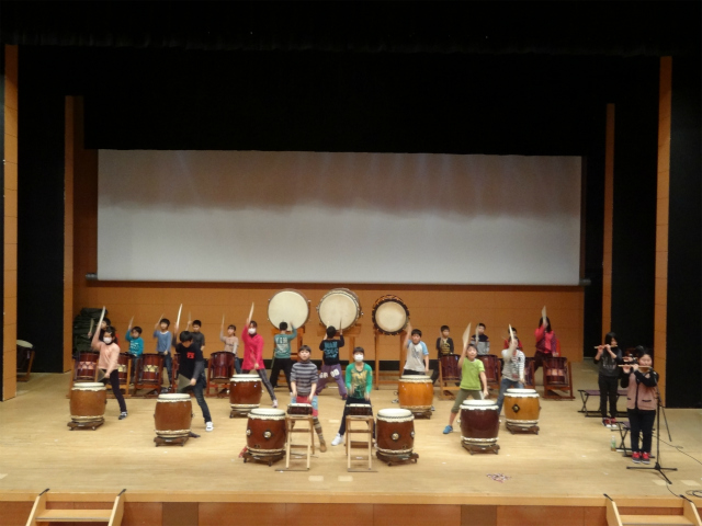 | 2013/02/02 未来中心 小ホールで特別練習会をしました。 倉吉未来中心小ホールで特別練習会をしました。 9時から12時までは、レギュラーの特別練習会です。 主に、2月17日のGRAPLE JAMのステージを意識しての練習を中心にしました。 新曲「オーライ!」のリズムの練習をしました。 午後1時からは、団員全員での練習会をしました。 3月9日に開催する「打吹童子ばやし21期演奏会」のための練習をしました。 疾風→MATSURI→打吹童子ばやし→長谷寺の絵馬伝説→里見伝説新・八犬伝→日本のまつり 卒業式の立ち位置、順番を決めました。 3時30分には、鳥取中央育英高校書道部の指導者の山田美鈴先生と生徒のみなさん7人、GRAPLE JAMの門脇大輔さんのお父様が、見学にこられました。 特別に照明効果をつけて、2月17日のステージの演奏を視聴してもらいました。 打吹童子ばやしの子ども達と育英高校の生徒の皆さんとエールの交換をしました。 お互いに本番に向けて気持ちが高ぶってきましたよ。 最後に、喧嘩MATSURIと日本のまつりを演奏して、全日程を終了しました。 久しぶりに、打吹童子ばやしの全曲を演奏しました。 手にマメをたくさん作りましたね。みんなの打ち込む音が力強くなってきましたね。 集中力もずいぶん変わってきました。 お互いの良いところが見えるようになりましたね。 さて、新曲は完成までまだまだかかりますが頑張りましょう。 |