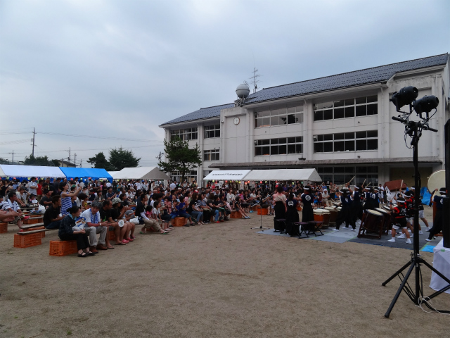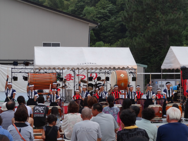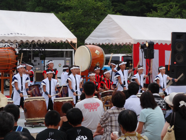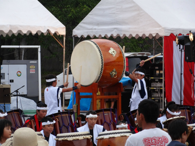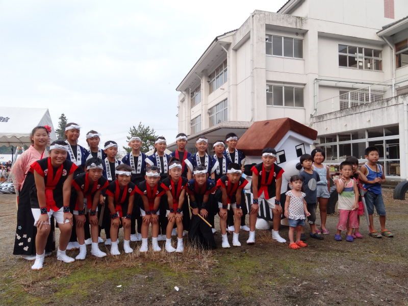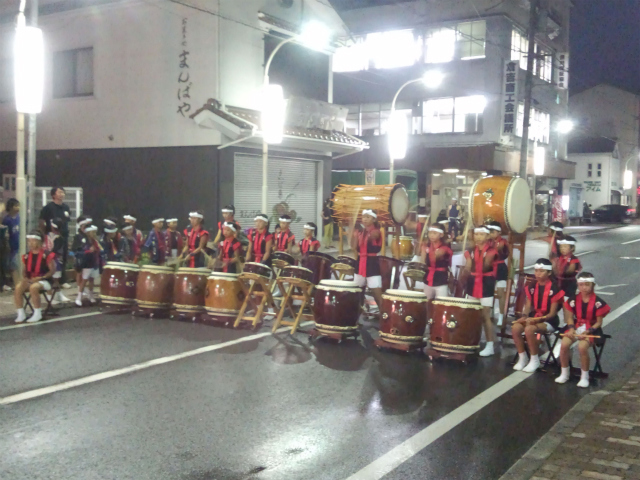 | 2012/07/29 高城まつりで感動を与える演奏をしました。 団員の高城小学校出身者(古林まおさん6年生、古林くうたくん4年生)の縁で、初めて「高城まつり」で演奏することになりました。 出演予定時間は、夕方5時30分。 今日も夕立が・・・4時20分ころからパラパラと雨が降ってきました。 まあ、童子ばやしですからそのうち上がるでしょう。 10分間、控えの渡り廊下で音出しをさせていただきました。 太鼓の音に、たくさんの人が集まってこられました。 隣りにいた保育園の保護者の方から「太鼓させたいな。」とたくさん声をかけられました。 祭りのステージイベント開始時間は、雨との調整で25分遅れましたが、打吹童子ばやしの出番には雨もすっかり上がって、思いっきり30分の演目をさせていただきました。 鼓魂→里見伝説「新・八犬伝」→MATSURI を演奏しました。 今日の、鼓魂の一番太鼓は、吉良くんと中山くんでした。 太鼓の響きにたくさんの方が集まってこられました。高城地区では初めての演奏です。 たくさんの方から、初めて見た聞いた。かっこいいなあ。凄いなあ。みんな小学生ですか。と声をかけられました。 青葉さやさん(小6年生)の伏姫の音色は、貫録がついてきました。安心して聞いていられます。 「新・八犬伝」では、曲の大切なテーマを吹きます。 ただ、メロディーを吹くのではなく。そこには、感情や情景があります。 八犬士のこと想い、乱世を憂い、妬みや呪いと戦い勇気を送ります。そして新しい平和な希望あふれる世を願い、幸せを祈ります。 「宴の章」では、皆さんとともに心を繋げて祝いの宴を楽しみます。最後には大輪の花火が打ち上げられます。 八犬士、雷鳴組も曲の意味を大切にして、演奏していきましょう。 今年は、「新・八犬伝」の演奏リクエストが多いですよ。 演奏後に、吉良リーダーに今日の演奏の総括をしてもらいました。 「今日の演奏は、みんなが気持ちを込めて頑張ったと思います。これからは、切れ味や強弱、声を出すところをもっと練習して、感動を与える演奏を目指しましょう。」 そうだね。声が出るともっと気持ちを伝えることができるね。 古林さんの縁で、初めての高城まつりでしたが、本当に賑やかな祭りでした。 今回、たくさんの方に打吹童子ばやしを披露できて良かったです。 お世話いただいた皆様ありがとうございました。 音響さんからは、しの笛の音色のこと、子ども達の演奏のこと「感動しました。」とコメントをいただきました。 |