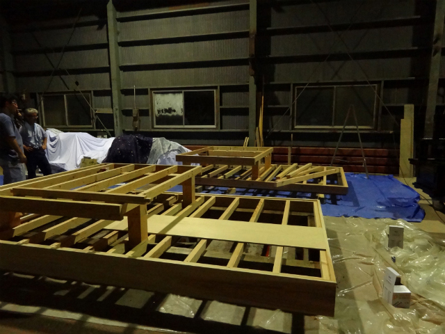 | 2012/07/18 太鼓山車の制作開始です。 太鼓山車の制作開始です。棟梁は、木下くん。 打吹童子ばやし副代表の日野さんを中心に制作開始です。 男衆は、夕方6時、仕事が終わってから集合。9時前まで頑張りました。 今年は、日野号・太鼓山車2台・田中号で祭りを盛り上げます。 |
