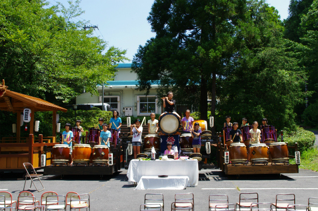 | 2012/07/28 山車の安全祈願、打吹まつり成功祈願祭をしました。 向山新鮮組と合同で、山車の安全祈願と打吹まつりの成功祈願をしました。 太鼓山車「鼓魂号」「祭囃子号」の完成に合わせて、「日野号」、「田中号」も含めて、安全祈願を八幡神社の宮司さんによる神事を行いました。 真夏日よりの中、一台ずつ丁寧に清めていただきました。 神事の後は、打吹まつりに向けての決起大会をしました。 向山新鮮組隊長の松本さんの音頭で乾杯。 その後、打吹童子ばやしの子ども達によるMATSURIの演奏をし、坂井かんな副リーダーが打吹まつりに向けての決意を述べました。 「たくさんの方に元気をあげるような演奏をしましょう。そして思いっきり祭りを楽しみましょう。」 |