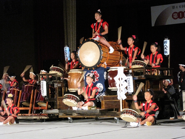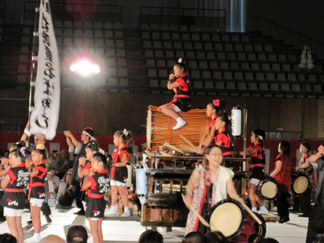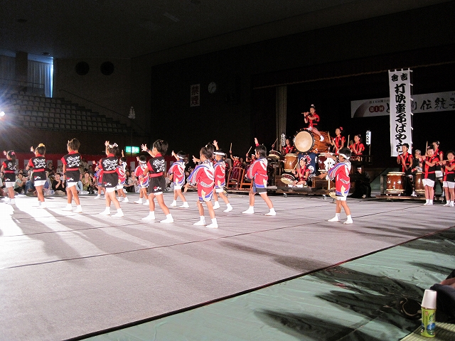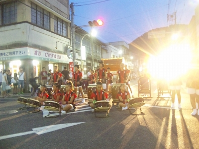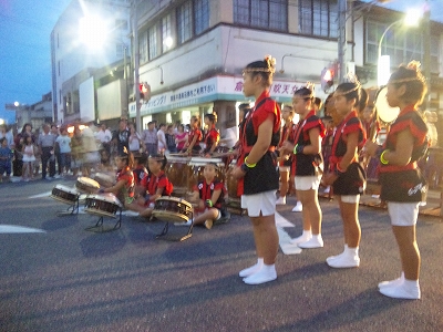 | 2010/07/31 天女伝説まつりで演奏しました。 7時15分より演奏をしました。 たくさんの方に聞いていただきました。 今日は一日 MATSURI(5分)→打吹童子ばやし(15分)→宴(3分) の流れで演奏しました。 レギュラー組の集中練習会でしたね。 来週は打吹まつりです。またここで演奏します。 「宴」では自然に手拍子がわきます。今日の三公演のどの会場でもそうでしたね。 7月最後の日でしたが、打吹童子ばやしの夏はようやく半分終わったところです。 8月は、7日打吹まつり→8日とっとり伝統芸能まつり→14日しゃんしゃん祭りと続きます。 みんなが体調管理して、打吹童子ばやしの元気をみなさんに届けたいですね。 |