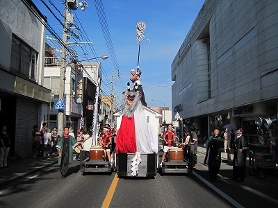 | 2010/08/07 打吹まつりでワッショイ♪ 4時30分 倉吉銀座通りの飛天ステージから阿波踊りごじゃへいのパフォーマンスが5分、その後 女みこし2基の先導で阿波踊りが進行していきました。 我々は、タカラヤ前から出発。牛鬼の出発地点のごうぎん駐車場まで、MATSURIの曲で進行しました。 打吹童子ばやしは祭りの盛り上がりを楽しみました。 |