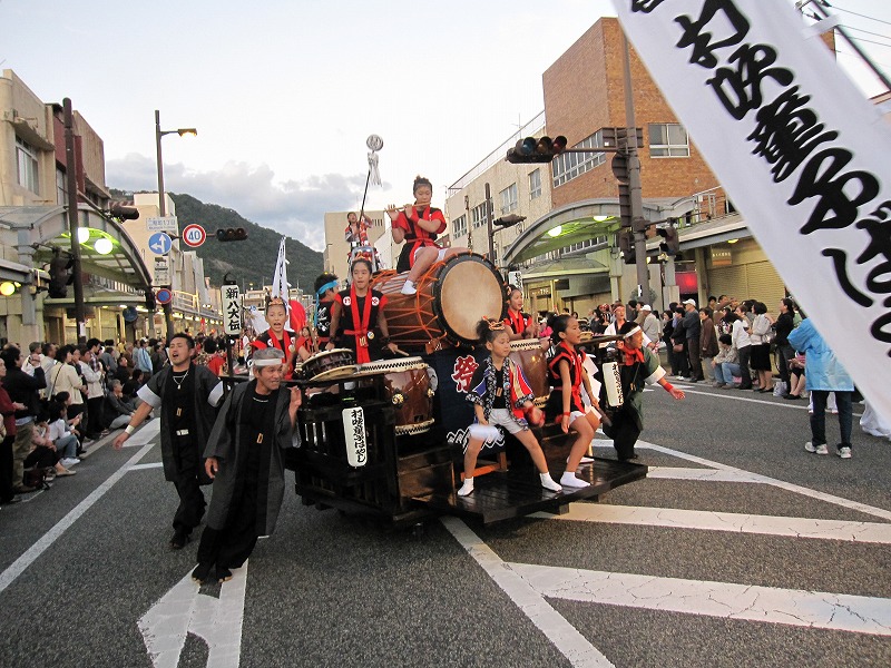 | 2009/10/11 日本のまつり 交流パレード 楽しかった!夜7時 撤収場所まで最後のワッショイパレード。 沿道のお客様から「ありがとう!」「よかったよ〜!」と拍手をいただきました。うれしかったね。 企画していたパレードテーマソングのエンディングもバッチリ決まったね。 最後は、日本のまつり 若桜街道で楽しませていただいたことに感謝してありがとうございましたをみんなで言いました。 みんなの 顔・声 すがすがしかったね。沿道のお客様から拍手をいただきました。 これが祭りだね。 |