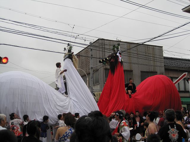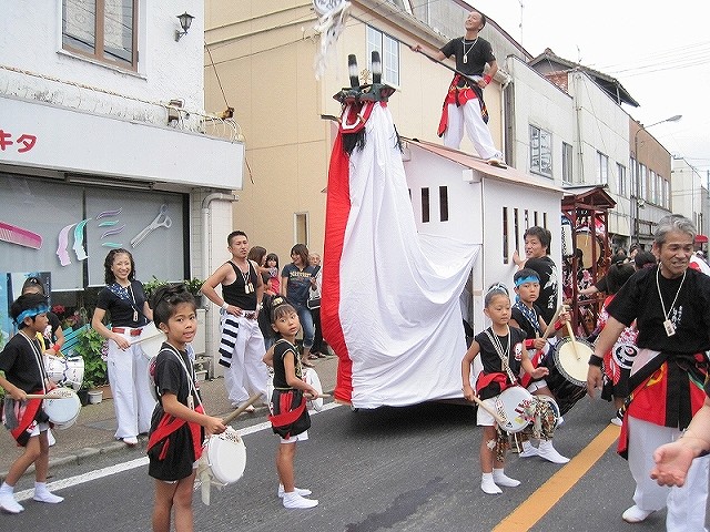 | 2009/08/01 打吹まつり初日を盛り上げました。 打吹まつりでわっしょい! 年に一度のおらが町 倉吉市の祭り。女みこしと牛鬼と一緒にわっしょい!わっしょい!祭りを楽しみました。 |