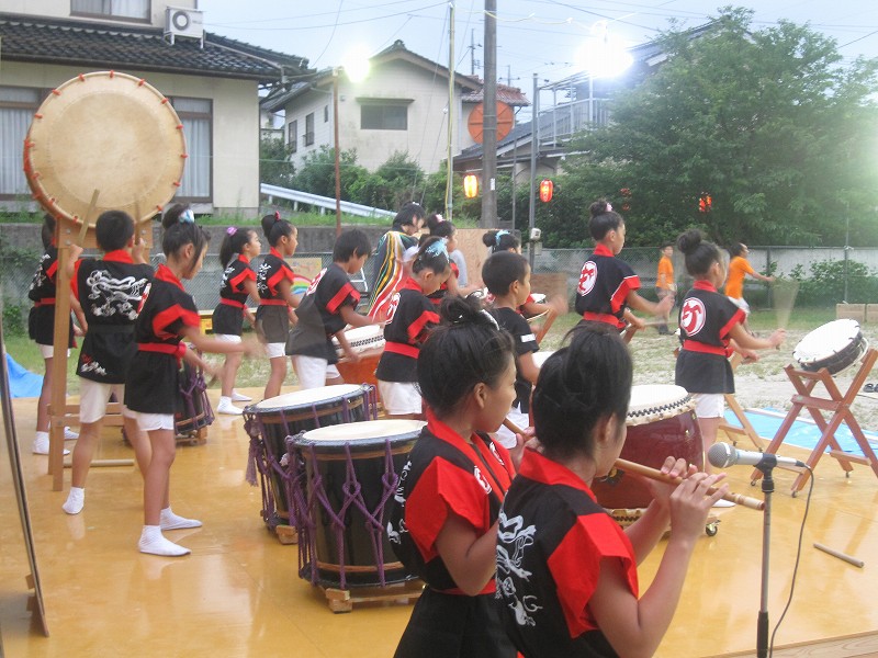 | 2009/08/05 定例練習会 みんな素直な子ども達です。今日は顔つきも太鼓の音もたくましく聞こえました。 祭の効果がバッチリです。 気合の入った掛け声が響きました。 今日は、「長谷寺の絵馬伝説」と新・八犬伝から「宴」を続けて演奏しました。最後に打吹童子ばやしの2章3章を演奏しました。 今日も一生懸命に太鼓を叩いていた門脇くん(5年生)がレギュラー入りしました。おめでとう。 ☆団員が住んでいる馬場町の夏祭りと八屋の夏祭りに有志で参加、演奏します。 馬場町夏祭り 8月8日午後6時より演奏します。 八屋夏祭り 午後6時30分より演奏します。 有志で東郷湖ドラゴンカヌーのジュニアカップに出場します。