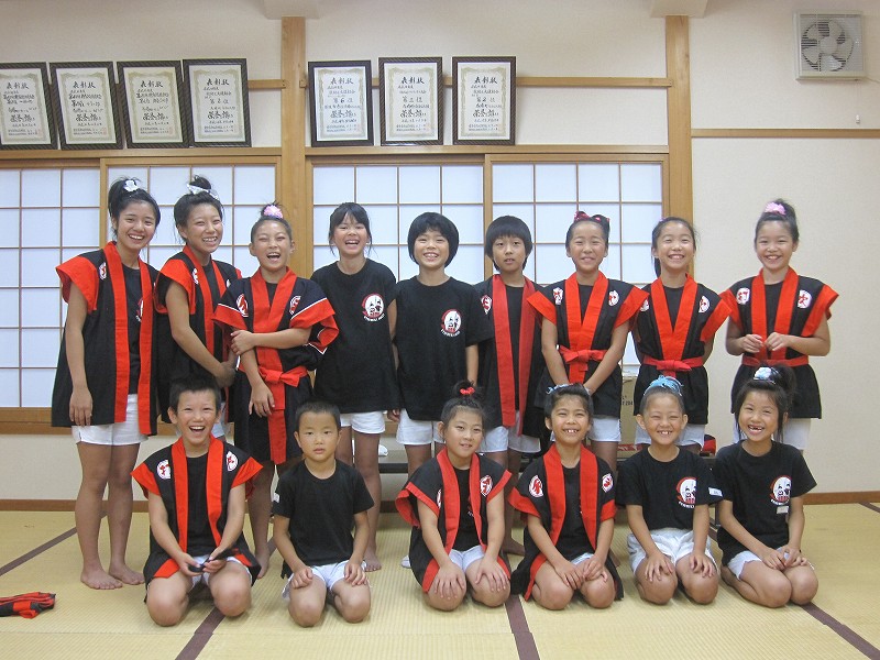 | 2009/08/12 定例練習会 今日は、練習場の使い方とマナー・太鼓の片付けと準備の仕方など、打吹童子ばやしの団員としての心得を40分ゆっくりと話をしました。 いいチームとして一つ上の打吹童子ばやしをめざして心を一つにしようを合言葉にミーティングをしました。 日本のまつりのステージで演奏するメンバーを発表しました。 少数精鋭で行きます。雷鳴組を10人+2人にしました。 レギュラーになっていないメンバーは全員が宴の曲で登場し踊りをします。踊り子は、総勢29人になりました。 8月15日(土)の八屋公民館夏祭りの出演してくれるメンバーの演奏で「宴」を踊りました。 しの笛メンバー3人がTOPを交代して3回踊りました。 最後に、「新・八犬伝」を最初から通して演奏して、最後に「宴」を踊りました。 内容は気持ちでカバー☆120点の舞台表現でした。本当に気持ちのいい演奏に踊り、掛け声でした。 いつでも、こんな舞台表現ができたらいいねえ。