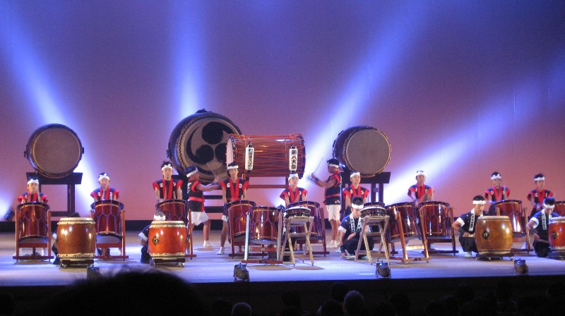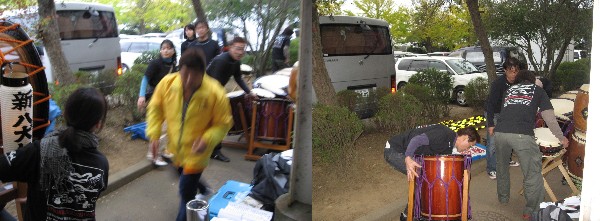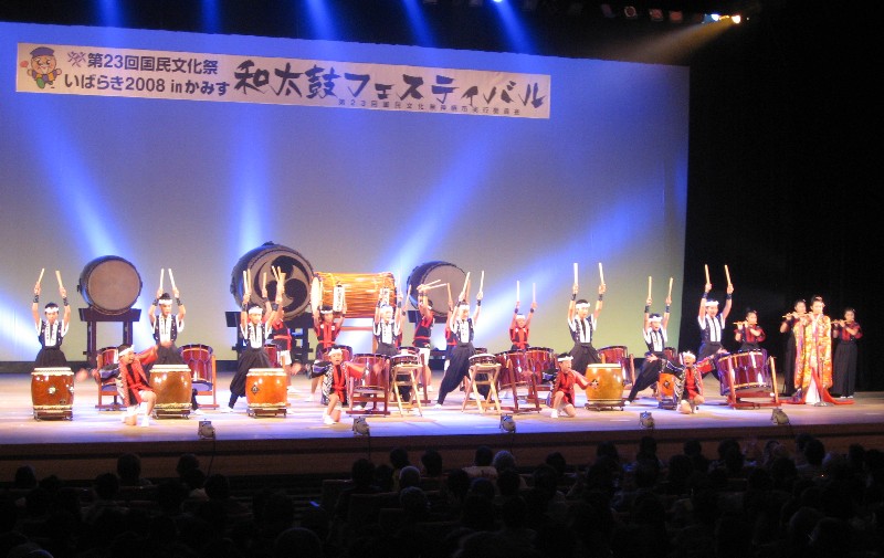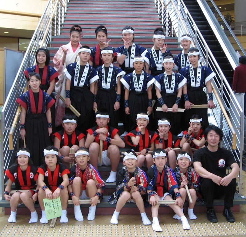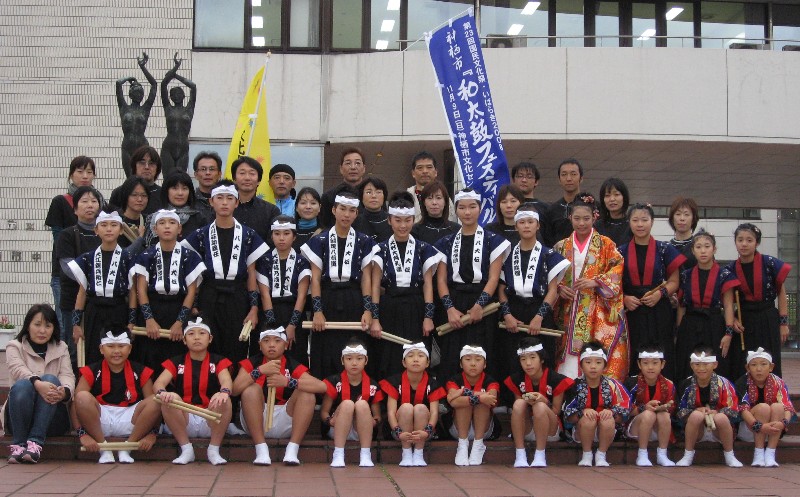 | 2008/11/9 国民文化祭いばらき「和太鼓フェスティバル」 神栖市文化センター 本番 素晴らしい演奏にみんな大満足でした。 国民文化祭いばらき2008 「和太鼓フェスティバル」 茨城県神栖市 神栖市文化センター 11月9日2時30分より 本番演奏。 みんなの気持ちもひとつになって、本番は素晴らしい演奏をしまし。 演奏したみんなは、やり遂げた気持ちで大満足です。笑顔があふれました。 お客様もフェスティバル運営スタッフも保護者も、大満足でした。 「新・八犬伝 〜宴〜」では、会場の手拍子も一段と大きくなって、みんなが感動をもらいました。 「きをつけ! 礼!」「ありがとうございました。」 会場から鳴り止まない大きな拍手をいただきました。 八犬士の力強い演奏に、会場のみなさんは大人か学生かと思っておられたようで・・・ 会場前で記念撮影してるところにお客様が出てこられて、「えっ! こんなに小さかったんだ。」「素晴らしい演奏でしたよ。」とお褒めの言葉をいただいて、 子ども達は、またやり遂げた充実した笑顔が止まりませんでした。 本当に、子ども達は良く頑張りました。かっこよかったよ! 全国レベルの和太鼓チームが集まっての「和太鼓フェスティバル」 打吹童子ばやしの子ども達の演奏は全然見劣りしませんでしたよ。 子ども連は、打吹童子ばやしだけでした。みんな、高校生以上のチームで、短大、大人のチームの中での演奏でした。 子ども達は、いっぱい刺激を受けて、また大きく成長しました。 打吹童子ばやしの遠征に関わっていただいた保護者のみなさまお疲れ様でした。また、みんなの連携が深まったと思います。 また、遠征したいですね。 今回、伏姫の衣装を協力していただいた 倉吉市の「とさき貸衣装店」の戸崎社長様 ありがとうございました。素晴らしい衣装にお客様もスタッフも大満足でした。本当にありがとうございました。 今回の遠征を支援していただいた 鳥取県文化観光局の皆様ありがとうございました。子ども達は、壮行会での決意の言葉通り、素晴らしい演奏をしました。 倉吉市の皆様ありがとうございました。 快く子ども達を送り出していただいた学校の先生方ありがとうございました。 和太鼓フェスティバルのスタッフのみなさまありがとうございました。 ご支援いただいたたくさんの方に感謝します。 また、県外遠征をしたいです。 http://www12.ocn.ne.jp/~m-hoi/kokubun2008.pdf http://www12.ocn.ne.jp/~m-hoi/kokubun20081109.pdf |