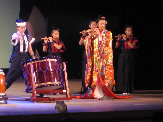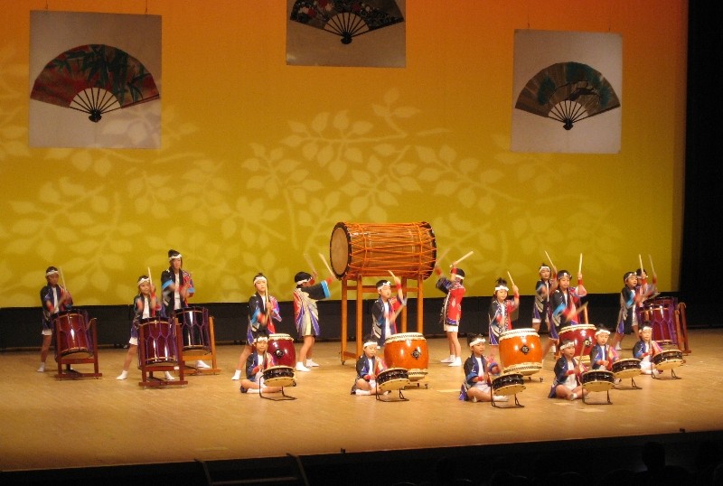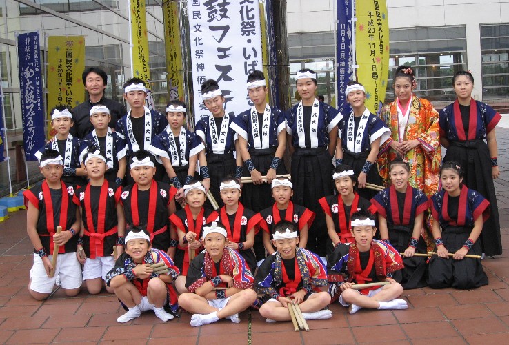 | 2008年12月21日(日) 千宝会チャリティー芸能発表会で プログラム25番 打吹童子長谷寺組による「長谷寺の絵馬伝説」 打吹童子ばやし太鼓歴3年未満の子ども達による演奏です。 1・2年生中心の長谷寺組 しっかりした音を響かせました。 笛には、八犬士組からも友情出演で 未来中心大ホールでの発表を楽しみました。 |