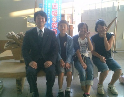 | 2008/10/09 国文祭参加団体壮行会に出席しました。 11月9日午後4時より 県庁で「国民文化祭いばらき」参加団体壮行会が行われ、 打吹童子ばやし団員リーダー福井さん、副リーダー柏さん、大濱君の3人が出席しました。 鳥取県文化観光局長さんから激励の言葉を頂き、各団体代表者が参加出演にあたっての決意表明をしました。 打吹童子ばやしは、3人が短いながらもしっかりとした決意を述べました。 |