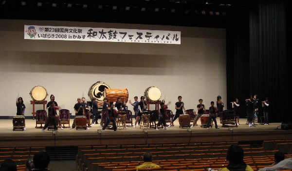 | 2008/11/08 国文祭いばらき「和太鼓フェスティバル」 リハ終了 いよいよ明日本番。だんだんに本番モードです。 茨城県神栖市 神栖市文化センターに、予定通り無事到着。 13時に太鼓を荷受して、打吹童子ばやし太鼓班が活躍。運営スタッフのみなさんも良くしていただいて、太鼓の組み立て保管まで終了。 子ども班は、トラック便で届いた衣装ケースなどを確認。控えのホールに移動し、確認作業。 子ども達は、しばらく他チームのリハーサルの様子を見学。 その後、ロビーでリハーサルにむけてのミーティング。 16時から20分間のステージリハーサル。 スタッフは本番は、客席から見れないということで、国文祭本番と思って、通しで演奏しました。 まずまずの演奏ができたと思います。 さあ。明日はいよいよ本番。頑張ろうね。 |