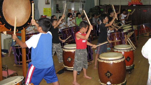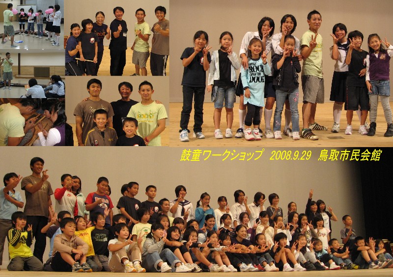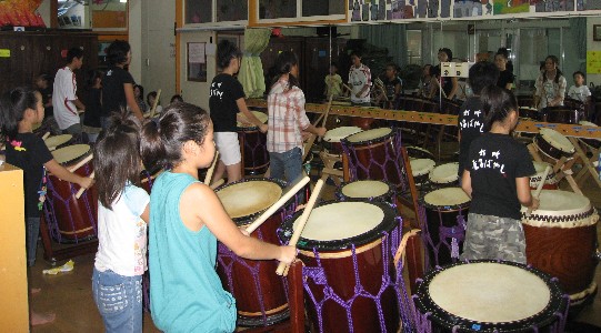 | 2008/09/13 明日は、倉吉天女音楽祭「ジャンルを問わないコンテスト」予選だよ。 9月13日(土)午後1時〜5時まで、集中練習をしました。 コンテストに出場するのは、太鼓歴2年未満のメンバーでテスト100点満点の80点通過の子ども達です。 今日は、最後に保護者のみなさんの前で演奏しました。 合格です。120点の演奏だよ。 明日は、みんなの気持ちをひとつにして、思う存分コンテストを楽しんでください。