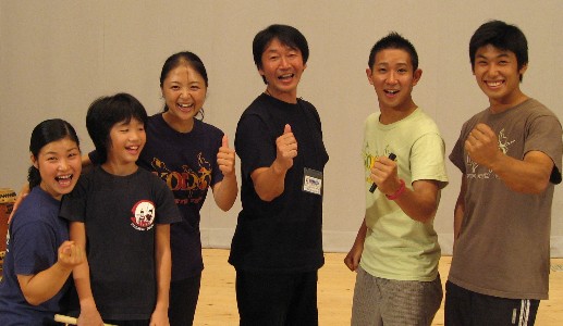 | 2008/09/29 KODO鼓童ワークショップに参加しました。 鳥取市民会館で午後6時30分より、KODO鼓童ワークショップに打吹童子ばやしメンバー15人が参加しました。 太鼓のワークショップには、10名のメンバーが参加しました。 健太さん、宮崎さん、島内さんありがとうございました。 篠笛のワークショップも特別にしてもらいました。5名が参加しました。 本当に基礎の基礎から丁寧に教わりました。とっても勉強になりました。 「体」→「技」→「心」の順番に教わったね。 盛悟さんありがとうございました。 ワークショップ楽しかったね。とっても勉強になったし、最後はサインまでもらったよ。 バチにサインしてもらったよ。 記念撮影もいっぱいしたよ。 また、明日から気持ちを込めて練習に励みましょう。 |
