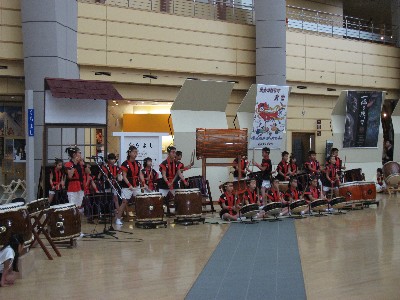 | 2006/11/18 鳥取県中部地区青少年郷土芸能フェスティバル 打吹童子ばやしのメンバーは小学1年生から6年生 たくさんの青少年郷土芸能の仲間とアトリウムライブを楽しみました。 打吹童子ばやしのメンバーは手拍子をもらってのりのりの演奏をしました。 最後は、出演者全員で鼓童KODOの「彩」で盛り上がりました。 |