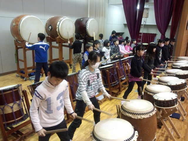 | 2014/03/9 22期演奏会に向けてのレギュラー特別練習会をしました。 2014.3.9 昨日に続き、22期演奏会に向けてのレギュラー特別練習会をしました。 13時30分から15時まで、新曲「遥かなるふるさと」メンバーでの練習をしました。 なかなかいい感じになってきました。90点はあげたいですね。 16時からは、さんさんプラザ体育館でレギュラー組の練習会をしました。 「オーライ!」「喧嘩MATSURI」「新・八犬伝」を仕上げるのがテーマです。 まずは、「オーライ!」から1時間30分みっちり打ち込みました。休憩しては楽譜の確認、再度打ち込みです。 「オーライ!」の流れとノリは理解できたようです。80点といったところでしょう。本番まであと少し・・・。 次に、「喧嘩MATSURI」を通して練習をしました。2回したら何とか80点です。 次に、「新・八犬伝」を演奏しました。意外です。なかなか良い演奏でしたよ。90点☆ 一応合格点です。 最後に、オープニングの3曲を通して演奏しました。 保護者の皆さんに、新曲「遥かなるふるさと」を初披露です。 「鼓魂」「MATSURI」を通して流れの確認と演奏の確認をしました。 いよいよ本番まで一週間を切りました。 子ども達の底力、頑張りに期待です。 水曜日に大道具担当者と曲ごとの配役、太鼓の位置と数、動線の確認をします。 |