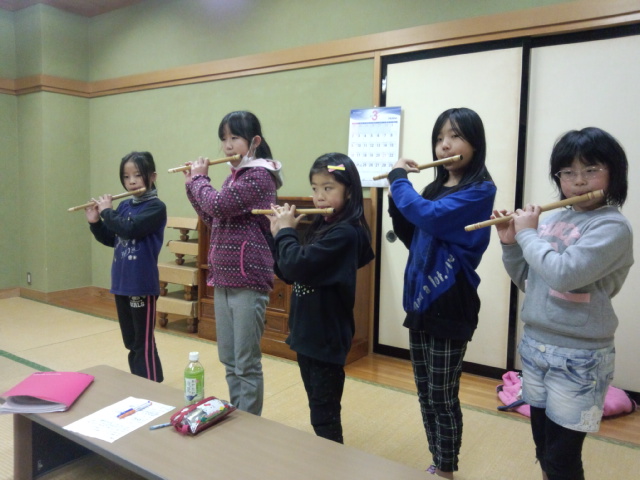 | 2014/03/06 チーム01の練習会 2014.3.6 夕方からチーム01(3年生以下)の練習会をしました。その後、新曲「遥かなるふるさと」組の練習会を40分しました。 チーム01の課題曲 「童子01」と「長谷寺の絵馬伝説」を練習しました。 最初に、子ども達だけでどんな演奏にするか考えてもらいました。「45分になったら音出ししますよ。先生は、それまで、しの笛メンバーとお話してきます。」 おお・・・ちゃんとなんか話し合いをしていますよ。4月5月には考えられない風景です。(いいねえ) 演奏が子ども達の号令で始まりました。ロビーで聞いていましたが、なかなか気持ちのいい音が響いていました。 なかなか良いチームになってきました。 最後に、「童子01」と「長谷寺の絵馬伝説」の演奏を保護者の皆さんに聞いてもらいました。 気合入りすぎて、走る走る! でも打ち切っちゃうから凄い! ストーリー無視のスピード違反ですが・・・よく手がもとるようになったものです。 もっと心地よい演奏ができるように意識してみてね。とっても攻撃的な「長谷寺の絵馬伝説」の演奏でしたよ。 |