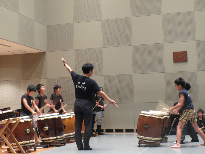 | 2013/11/07 定例練習会 11月10日に向けて 定例練習会 今日は、向山保育園の先生方にも宴の踊りを見学していただきました。 向山保育園出身の子ども達にとっては、懐かしい先生方の見学で気合が入りました。 まずはじめに、基本打ちで長谷寺のリズムを打ちました。しの笛隊も加わって演奏しました。 なかなかいいリズムが刻まれてきたので、2章、3章を全員で通してみました。また、上達しましたね。 続いて、見学の保育園の先生のために宴の踊りを2回しました。切れ味のある踊りができました。 11月10日の「鳥取県和太鼓連盟コンサート」の演奏の流れで、やぐらのソロから宴までを通してみました。 もう一度、今度は、鼓魂から宴までを通してみました。 最後に、11月17日の「倉吉子どもハッケン伝」での「新・八犬伝」戦いの章での八犬士の配役試合をしました。 山根りょう君(4年生) 対 倉光ひゅうま君 で「仁」の犬江親兵衛を競いました。 どっちもが甲乙決め難い演奏をしました。勝敗は保留です。 とりあえず、「新・八犬伝」バレエとのコラボ演奏バージョンのテンポでの演奏を通してみました。 明日、木曜日にLEGEN童の練習時間の前1時間を打吹童子ばやしの最終練習にしたので、宿題を明日に残して終了しました。 01の保護者のみなさんに、宴の鈴を子ども達の練習中に15セット作ってもらいました。あっという間に出来上がりました。また、一つのことで保護者同士が仲間になりました。 3・4・5・6年生の保護者の皆様には、宴の衣装制作の段取をしていただきました。ありがとうございます。出来上りが楽しみな衣装です。ありがとうございます。 |