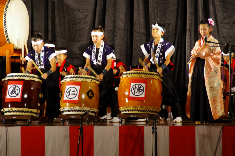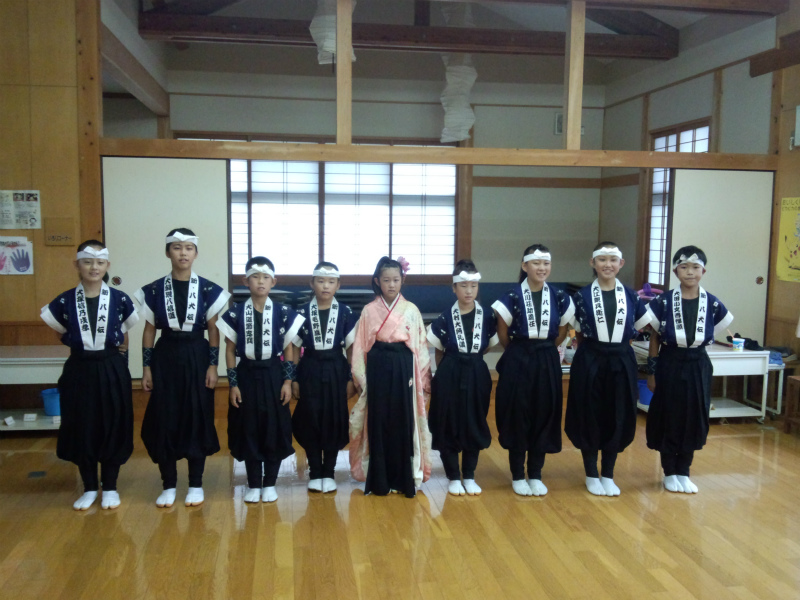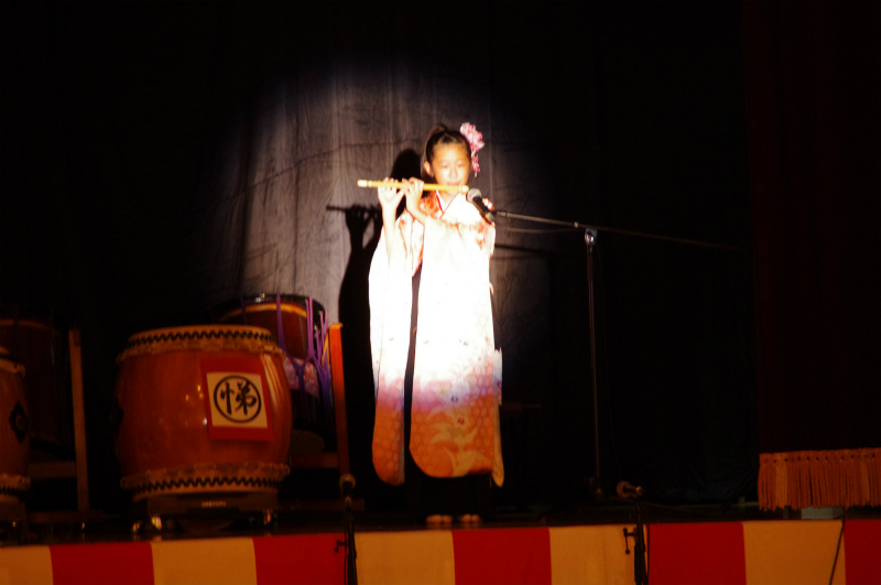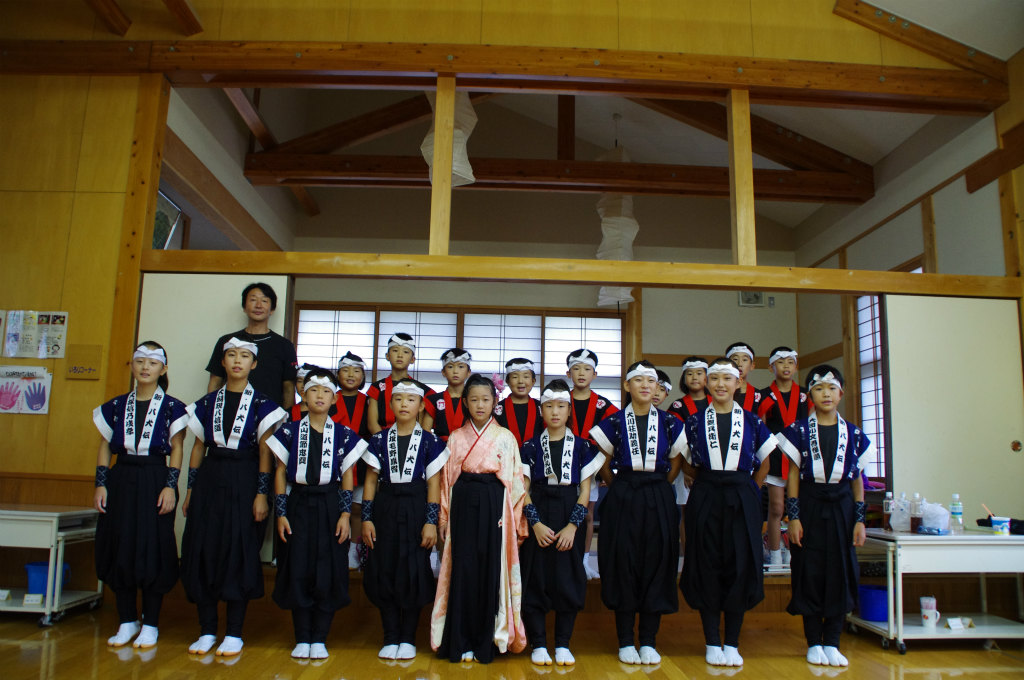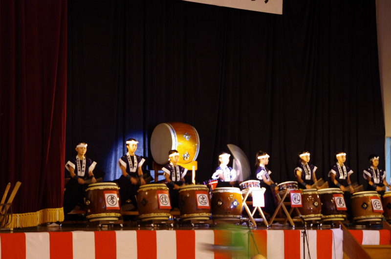 | 2013/09/01 里見まつりで素晴らしい演奏をしました。 里見まつりで勢いのある素晴らしい演奏をしました。 聞き惚れましたよ。いいねえ♪感動しました。 【伏姫】末兼わかな・・・4年生 【八犬士】 (仁)吉田めい・・・6年生 (義)谷口まお・・・6年生 (礼)遠藤れいな・・・4年生 (智)山根なな・・・4年生 (忠)福田ゆうき・・・5年生 (信)山根みゆ・・・6年生 (孝)門脇ゆい・・・6年生 (悌)林らいや・・・6年生 【雷鳴組】 (大太鼓) 倉光ひゅうま・・・5年生 坂井たかほ・・・5年生 (桶胴太鼓) 古林くうた・・・5年生 秋月はやて・・・5年生 山根りょう・・・4年生 秋月みこ・・・3年生 大番たいか・・・2年生 福田みずき・・・2年生 遠藤はやと・・・2年生 磯江あやか・・・2年生 【宴の踊り】 秋月みこ・・・3年生 大番たいか・・・2年生 磯江あやか・・・2年生 福田みずき・・・2年生 遠藤はやと・・・2年生 22期レギュラーが初めての「新・八犬伝」特別練習を向山保育園の遊戯室をお借りして、1時間30分たっぷりとしました。 案外打てているのに感心です。細かいチェックをして、最後に1回通して演奏しました。 昼食をとって、祭り会場の山守小学校へ移動です。 12時30分到着。早速リハーサルです。 まずまずの出来栄えです。照明はOHARAさん、音響はトミヤさん・・・いつもありがとうございます。 今日の「里見まつり」で、伏姫(しの笛)を4年生の末兼わかなさんがソロデビューです。 清らかな音色を会場に響かせました。 大した度胸です。頑張りましたね。 しの笛リーダーの山根みゆさんには、八犬士の信を打ってもらいました。太鼓で入団して、途中からずっとしの笛一本でやってきましたが、今回はサプライズです。 末兼わかなさんにもひとり立ちしてほしかったので、わかなさんには試練とサプライズです。 八犬士も雷鳴組もみんなが頑張りました。 踊りもとっても気持ちのいい踊りでした。 今日の舞台は、演奏も踊りも気持ちもとっても清々しい演奏でした。120点です。 |