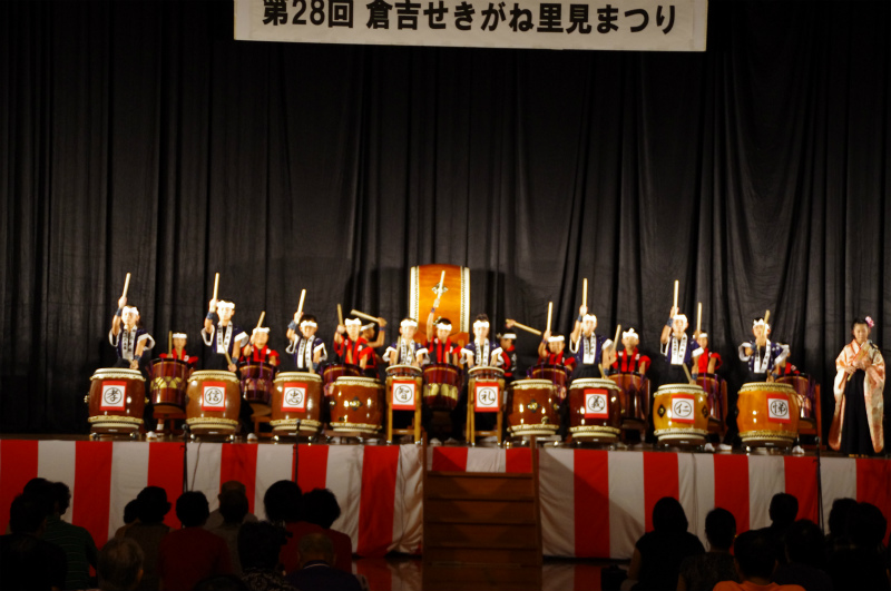 | 2013/08/24 鳥取県歯科医師会「会員フェスティバル」で、元気のいい演奏をしました。 元気のいい演奏でしたね。 8月24日夕方6時30分より、ホテルセントパレス倉吉にて 鳥取県歯科医師会「会員フェスティバル」がありました。東部、西部からも歯医者さんが参集です。 打吹童子ばやしは、開会セレモニーを終えて、懇親会の前に地域の芸能として演奏を披露しました。 MATSURI羽衣→うたげ を演奏しました。 元気のいい声、勢いのある演奏でお客様を圧倒しました。 今日のために、2尺4寸(浅野太鼓)の大太鼓を持っていきました。やぐらソロはとってもいい響きをしていましたね。 10分の演奏時間なので少々インパクト的には物足りない気がしますが、子ども達は一生懸命演奏しました。 演奏後には大きな拍手をいただきました。「すごいねえ。すごいねえ。」お客様から子ども達はいっぱい声をかけられていました。 出演機会を与えてくださった中部歯科医師会並びに鳥取県歯科医師会の皆様ありがとうございました。 また自信になりましたね。もっともっと練習して、たくさんの方にもっとすごいところを見せてあげましょうね。 来週は、9月1日に「倉吉せきがね里見まつり」です。22期メンバーでの初披露です。 |