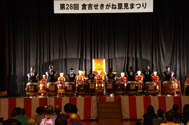 | 2013/08/21 定例練習会 24日ステージ練習 きまりのいい練習ができました。 まずは、基本練習です。 みんな真剣に頑張りました。 ドンドコ♪ 3連符(ばなな) 打吹童子ばやし2章 打吹童子ばやし3章 仕切り直しで、練習開始のあいさつです。 打吹童子ばやしの3章の揃い打ちを宮太鼓1パート、やぐら、桶胴太鼓パート、宮太鼓2パート 打吹童子ばやし2章から3章を全員で練習しました。 24日の鳥取歯科医師会「平成25年度会員フェスティバル」のステージ練習をしました。 01メンバーは、演奏を聴きました。 MATSURI羽衣→うたげ きっちり10分です。 全員で「童子01」を演奏しました。 5分休憩の後に、「新・八犬伝」を練習しました。 仁 福田ゆうきくん 義 谷口まおさん 礼・智 山根ななさん 忠 古林くうたくん 信 山根みゆさん 孝 門脇ゆいさん 悌 林らいやくん やぐら 倉光ひゅうまくん、坂井たかほくん 伏姫 末兼わかなさん 最後に全員で「童子01」を演奏して練習を終わりました。 8月24日出演者のミーティングをしました。 9月1日の里見まつりでの八犬士を発表しました。自主練習をしましょうね。 「NPOハレ」の取材を受けました。