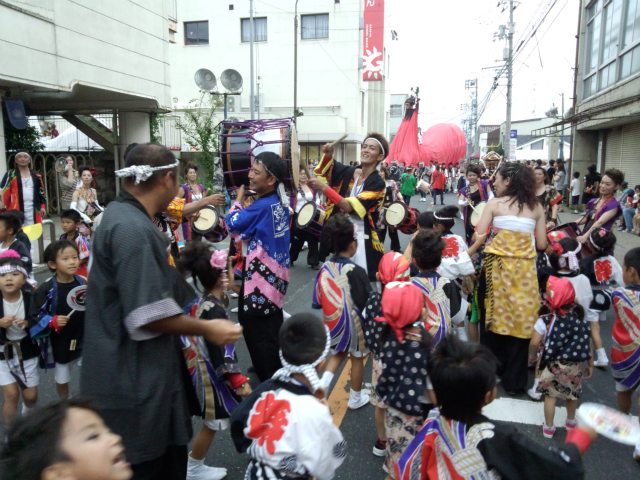 | 2013/08/03 打吹まつりでワッショイ♪ 最高に楽しかったですね。 みんなの笑顔も汗も弾けていました。 市制60周年の記念すべき年の打吹まつり☆ まる周年にかけて、打吹童子ばやしの山車がぐるぐる回りました。 女みこし、牛鬼、打吹太鼓、向山新鮮組お囃子隊と共に楽しく元気に祭りを盛り上げました。 打吹童子ばやしの子ども達 和太鼓LEGEN童の子ども達 打吹童子ばやしお祭り隊長の将義さん 打吹童子ばやし一番人気の山車:日野号隊長の青葉さん 打吹童子ばやし山車:鼓魂号隊長:米田さん 打吹童子ばやし山車:田中号棟梁:田中さん 田中号隊長:坂井さん 女組(担ぎ太鼓隊・盛り上げ隊)総隊長の谷口さん 副統括の日野副代表 エンジニア部長の門脇さん 運搬部長の山根さん 給水部長の磯江さん 各隊の隊員のみなさん OBのお父さん 祭り衣装づくりに頑張ってくださったお母さん達 ビデオ・写真撮影に奮闘してくださった谷口さん、青葉さん 祭囃子号を担当してくださったみのり福祉会山車隊の皆様 たくさんの人に感謝です。 この楽しさを今度は演奏に活かしたいですね。