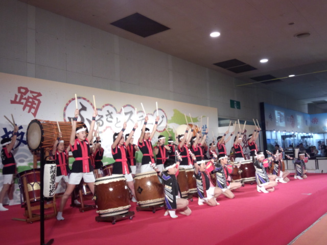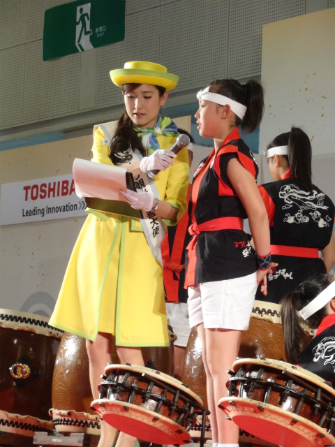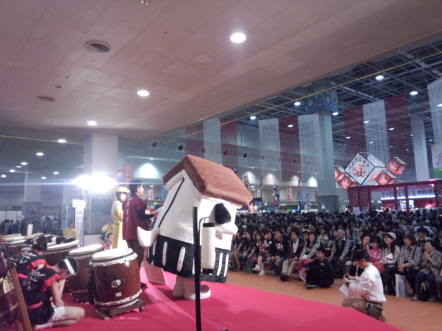 | 2013/05/04 「13 食博覧会・大阪」で元気のいい演奏をしました。 朝6時15分より太鼓を貸切バスに積み込んで、いざ大阪へ 10時10分 無事にイベント会場インテックス大阪1番ゲートに前に到着しました。 まずは、太鼓を6号館(日本の味覚館)ふるさとステージに移動です。 たくさんの保護者の方にスタッフとして参加いただいたので、スムーズにステージ横のスペースに収納完了です。 早速、イベント担当者の鳥取県西部本部本田さんから注意事項を聞き、みんなは食博覧会会場へ自由行動です。 12時から主催者より舞台の流れの説明・確認を受けました。リハーサルなし、ぶっつけ本番です。 本番は、14時からなので、13時に控室集合ということで、またイベント会場へ自由行動です。 13時、全員が遅れることなく集合できました。早速衣装に着替えて、本番前のエアでの演奏確認をしました。 プログラムは時間通りに進んで、13時50分よりステージ上に太鼓を設営し、子ども達は板付きにて待機です。 14時 「鳥取県のPRタイムの始まりですよ〜。まずは、打吹童子ばやしの子ども達の元気のいい太鼓の演奏をお楽しみください。」 まずは、MATSURIの演奏です。 「わっしょいわっしょい♪」元気のいい掛け声と太鼓の音で、さらにたくさんの人だかりができました。 倉吉市のマスコットゆるきゃら「くらすけくん」が倉吉市の紹介です。 観光大使の天女伝説のナレーションの後、2曲目打吹童子ばやしの演奏開始です。 観客の皆さんに倉吉市天女伝説「打吹」を伝えることができました。 最後に、倉吉市が里見氏縁の地であることを紹介。 里見伝説「新・八犬伝」より 「宴の章」を演奏しました。 踊りが始まると手拍子をいただきました。 みんなが、大阪遠征を楽しみました。余裕の演奏でしたね。 14時30分、演奏も無事に終わり、17時30分まで、またまた自由時間です。 4年に1度開催される食の世界大会「食博覧会・大阪」 インテックス大阪の1号館、2号館、3号館、4号館、5号館、6号館。 食べた食べた。歩いた歩いた。会場は人に酔いそうなほど大混雑、大盛況でした。 17時30分 会場内の鳥取県ブースへ全員でお礼のあいさつに行きました。 米田本部長さんにねぎらいの言葉をいただきました。 17時40分 倉吉に向けてインテックス大阪を後にしました。 21時40分 無事に倉吉に着きました。 無事に日程通り、遠征が終了しました。 流通バス 河井様には本当に安全・快適な旅にしていただきありがとうございました。 遠征の紹介とサポートをいただいた倉吉市観光交流課の皆様ありがとうございました。 鳥取県関西本部の皆様、本田様には、イベント会場でのサポートありがとうございました。 卒業生(中学1年組)にとっては、最後の遠征演奏になりました。 まだまだ、22期メンバーだけではイベントでの演奏は不安かなあ。 7月の出演までには、22期メンバーだけでなんとかできるように、猛練習してがんばります。 近々に出演依頼があったら、またよろしくね。 |