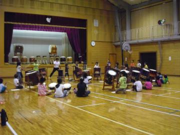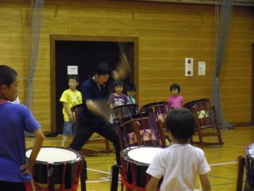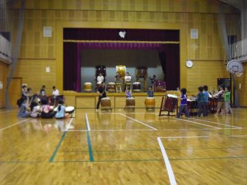 | 2013/05/15 定例練習会 元気のいい練習をしました。 今日も太鼓をフロアに下して、まずは、基本打ちをたっぷりしました。 汗が噴き出ます。水分補給の休憩もたくさんとりました。 途中、ステージ組のメンバーがMATSURIを演奏するのに合わせて、太鼓の周りをフロア組は走りました。 気分転換に大騒ぎをしました。 そのあと、全員でMATSURIの基本打ちをしました。笛のメンバーも合流して、全員でMATSURIを通して演奏をしてみました。 太鼓の音がずいぶんと弾んでいました。まさしく祭り気分。 休憩の後、2年目以上のメンバーで打吹童子ばやしを1章から3章まで演奏しました。 新団員のみんなは、バチをしまって演奏を聴きました。 山根りょうくん(4年生)が、5年生に見えるようなかっこいい演奏をしていました。 5年生以上のメンバーは思いっきり太鼓を打ち込んでいました。すごいすごい♪ いいチームになりそうです。 |